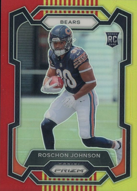 The Roschon Johnson 2023 Prizm #314 Red & Yellow (Rookie) /8 card in Raw condition has not changed in price in the last 30 days.