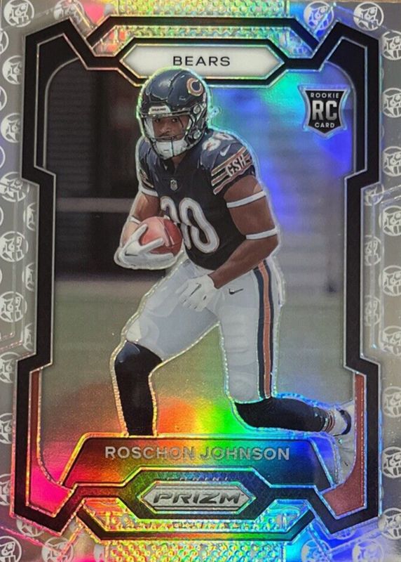 This card is 1 of 82 Roschon Johnson's card variations in the 2023 Prizm set being tracked by Sports Card Investor, including Base, Disco, Green, Green Ice, and Green Wave.