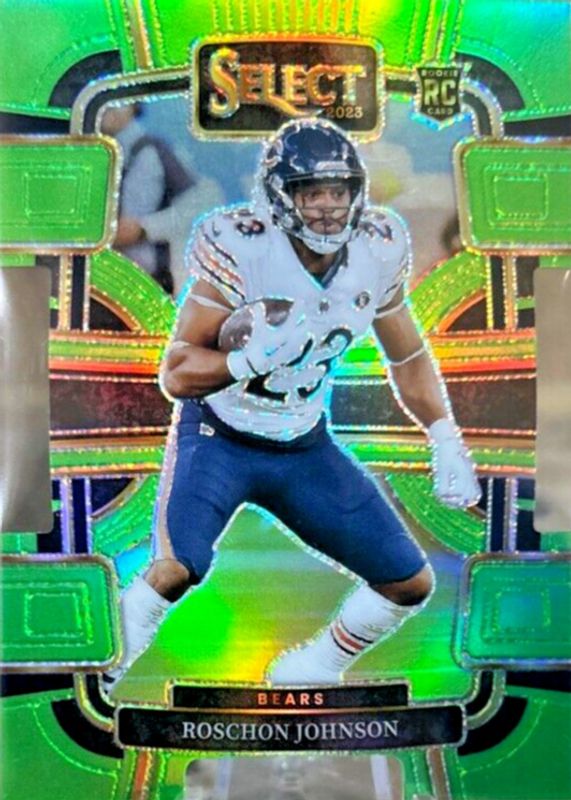 Roschon Johnson /599 2023 Select Concourse Die-Cut Neon Green Prizm #19 Bears