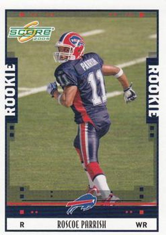 The Roscoe Parrish 2005 Score #364 Base Rookie card is 1 of 6 Roscoe Parrish's card variations in the 2005 Score set being tracked by Sports Card Investor, including Glossy, Scorecard /599, Adrenaline /399, Revolution /199, and Final Score /17.