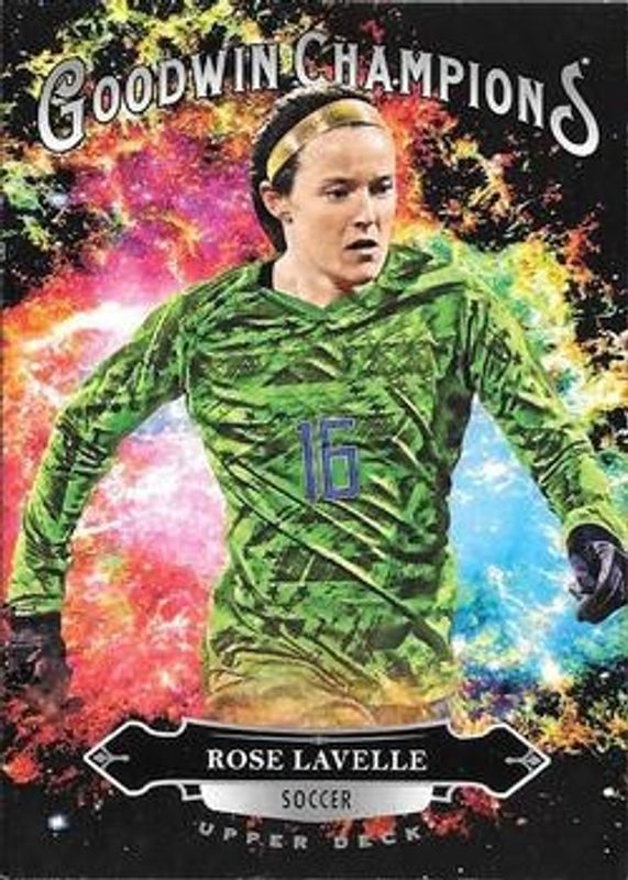 The Rose Lavelle 2020 Upper Deck Goodwin Champions #128 Base card is 1 of 51 Rose Lavelle's card variations in the 2020 Upper Deck Goodwin Champions set being tracked by Sports Card Investor, including #78 Base, #28 Base, #28 3 D Lenticular, Blank Back, and #28 Lightning Background.