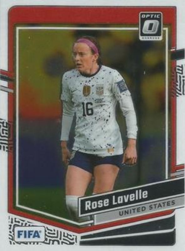 The Rose Lavelle 2023 Donruss #65 Optic card is 1 of 30 Rose Lavelle's card variations in the 2023 Donruss set being tracked by Sports Card Investor, including Base, Cubic, Diamond, Optic - Argyle, and Optic - Holo.