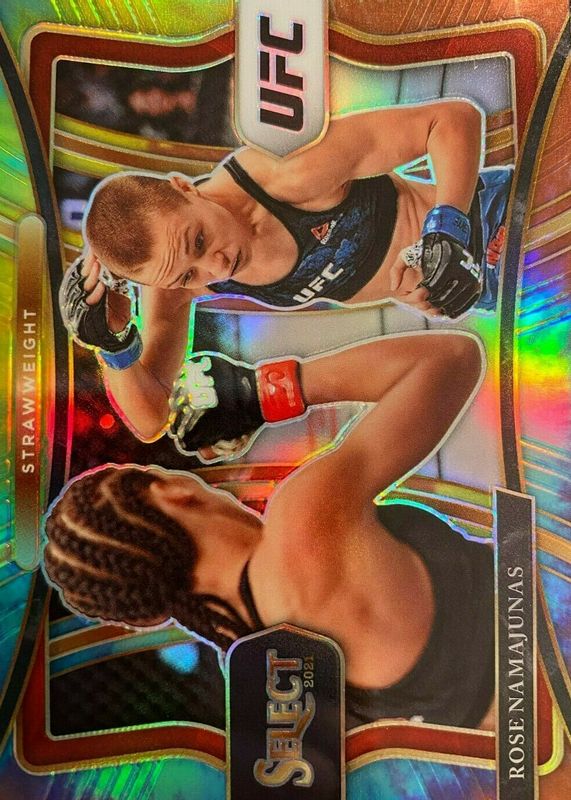 This card is 1 of 48 Rose Namajunas' card variations in the 2021 Select UFC set being tracked by Sports Card Investor, including Concourse Disco, Concourse Scope, Concourse Silver, Concourse Tri-Color, and Octagonside Disco.