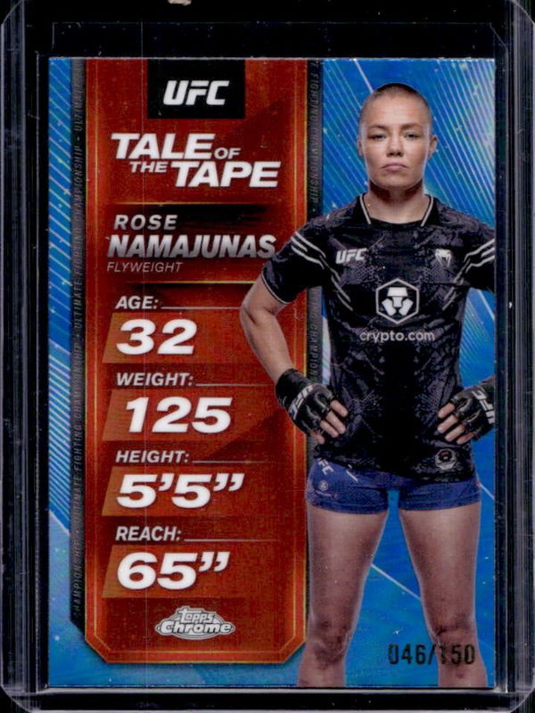 Rose Namajunas 2025 Topps Chrome UFC #TTT-14 Tale of the Tape - Blue Refractor /150 RAW Price Guide