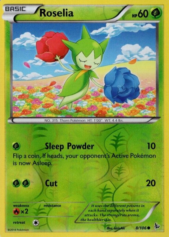 Roselia 2014 XY: Flashfire #008/106 Reverse Holo RAW TCG (LIGHTLY PLAYED) Price Guide