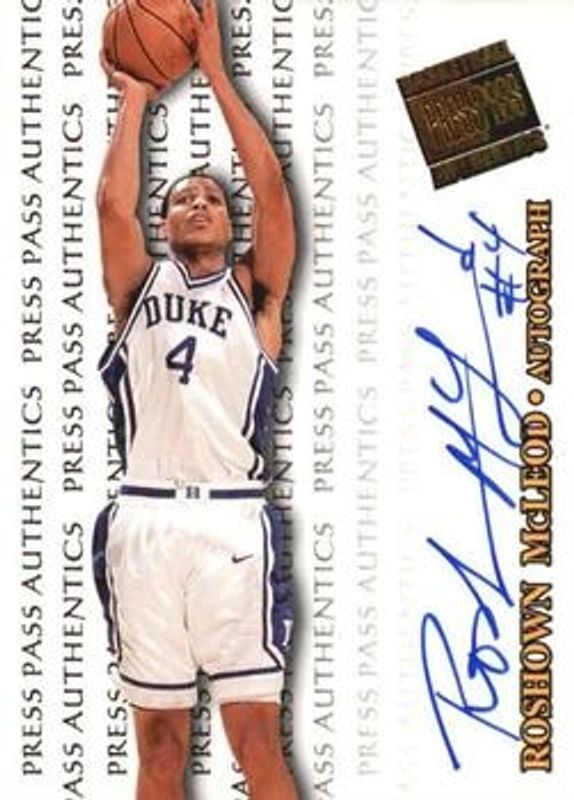 The Roshown McLeod 1998 Press Pass Authentics Autographs Rookie card is 1 of 4 Roshown McLeod's card variations in the 1998 Press Pass Authentics set being tracked by Sports Card Investor, including Base, Hang Time, and Sterling Autographs /10.