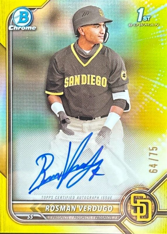 Rosman Verdugo 2022 Bowman Chrome #CPA-RV Prospect Auto - Yellow Refractor /75 (1st) RAW Price Guide