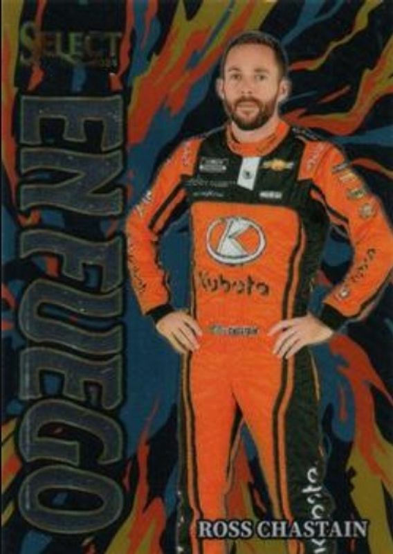 The Ross Chastain 2024 Select NASCAR #6 En Fuego card is 1 of 86 Ross Chastain's card variations in the 2024 Select NASCAR set being tracked by Sports Card Investor, including #132 Base, #32 Base, #232 Base, #232 Base Orange Flash, and #32 Base Orange Flash.