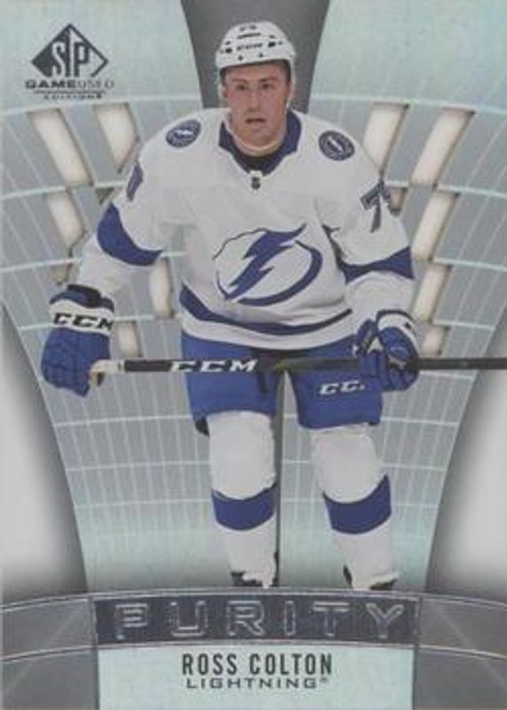 The Ross Colton 2021 SP Game Used #P-94 Purity Rookie card is 1 of 27 Ross Colton's card variations in the 2021 SP Game Used set being tracked by Sports Card Investor, including Base /99, Blue Auto, Red Jersey, Red Fragment /205, and Gold Auto Jersey /99.