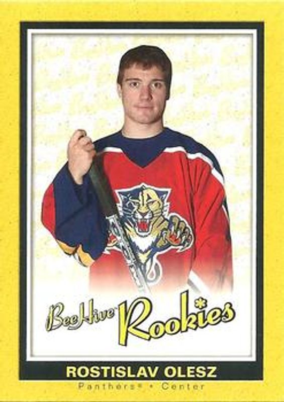 The Rostislav Olesz 2005 Upper Deck Beehive #105 Base Rookie card is 1 of 6 Rostislav Olesz's card variations in the 2005 Upper Deck Beehive set being tracked by Sports Card Investor, including Beige, Blue, Gold, Red, and Matte /25.