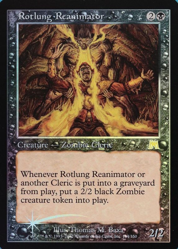 This card is 1 of 2 Rotlung Reanimator's card variations in the 2002 Onslaught set being tracked by Sports Card Investor, including Base.
