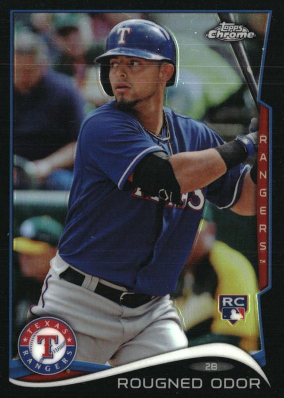 This card is 1 of 12 Rougned Odor's card variations in the 2014 Topps Chrome set being tracked by Sports Card Investor, including Base, Orange Refractor, Purple Refractor, Refractor, and X-Fractor.