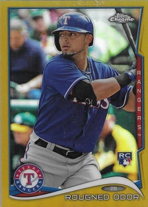 The Rougned Odor 2014 Topps Chrome #213 Gold Refractor /50 Rookie card in Raw condition has not changed in price in the last 30 days and was last sold for $8.00 .