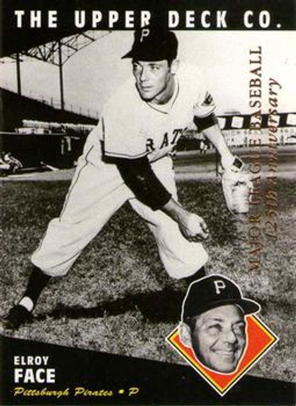 The Roy Face 1994 Upper Deck All-Time Heroes #59 125th Anniversary card is 1 of 2 Roy Face's card variations in the 1994 Upper Deck All-Time Heroes set being tracked by Sports Card Investor, including Base.