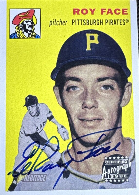 This card is 1 of 2 Roy Face's card variations in the 2003 Topps Heritage set being tracked by Sports Card Investor, including Real One Autographs - Red Ink /54.