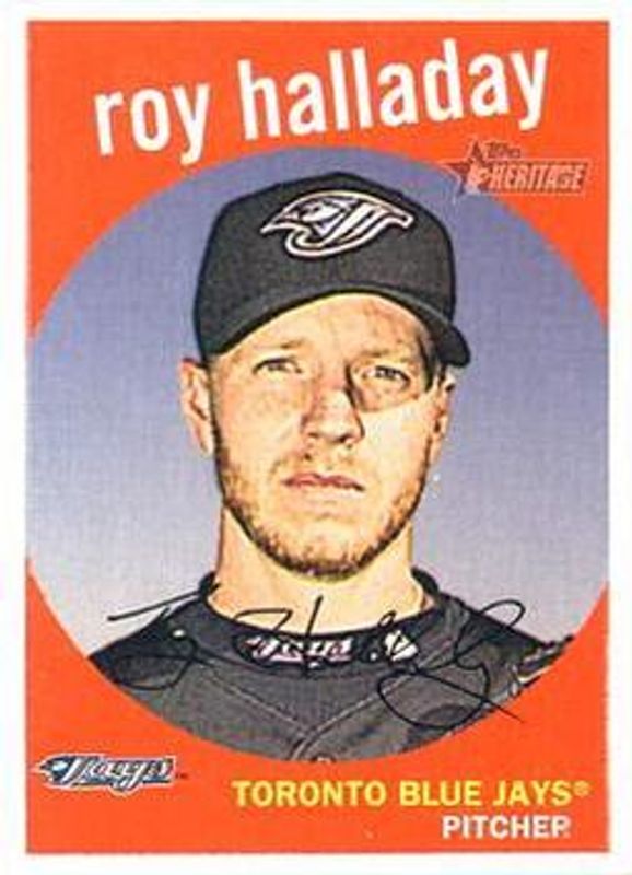 The Roy Halladay 2008 Topps Heritage #246 Base card is 1 of 4 Roy Halladay's card variations in the 2008 Topps Heritage set being tracked by Sports Card Investor, including Chrome /1959, Chrome Refractor /559, and Chrome Refractor Black /59.