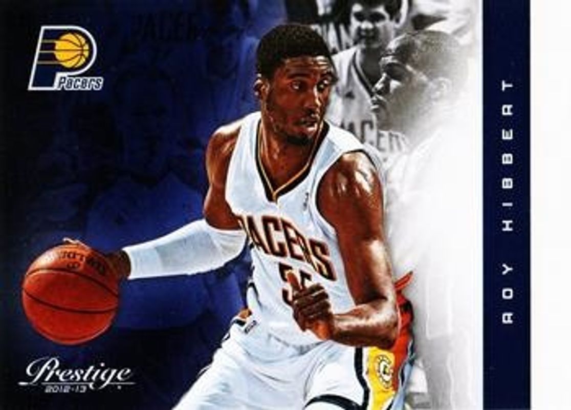The Roy Hibbert 2012 Prestige #67 Base card is 1 of 4 Roy Hibbert's card variations in the 2012 Prestige set being tracked by Sports Card Investor, including Bonus Shots Gold /249, Bonus Shots Black /10, and All Stars East.