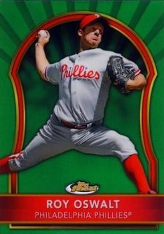 The Roy Oswalt 2011 Topps Finest #39 Green Refractor /199 card is 1 of 15 Roy Oswalt's card variations in the 2011 Topps Finest set being tracked by Sports Card Investor, including Base, Refractor /549, X-Fractor /299, Orange Refractor /99, and Gold Refractor /50.