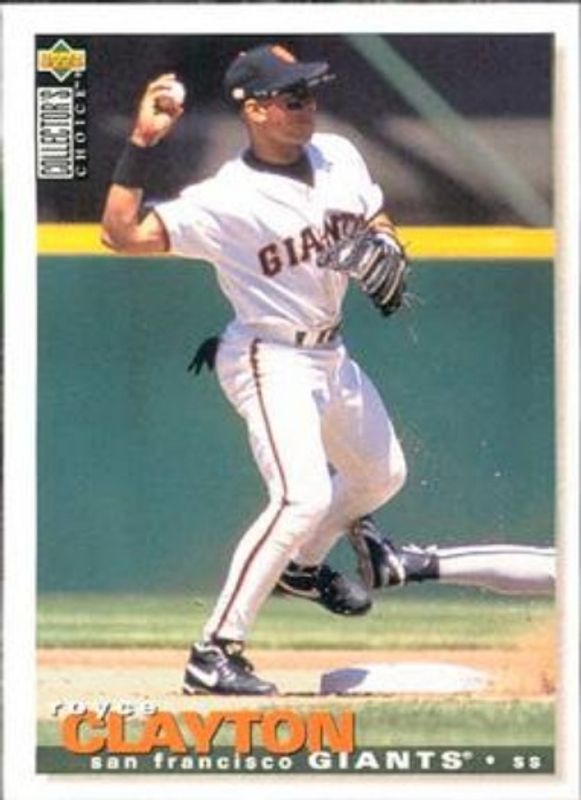 The Royce Clayton 1995 Upper Deck Collector's Choice #254 Base card is 1 of 3 Royce Clayton's card variations in the 1995 Upper Deck Collector's Choice set being tracked by Sports Card Investor, including Gold Signatures, and Silver Signatures.
