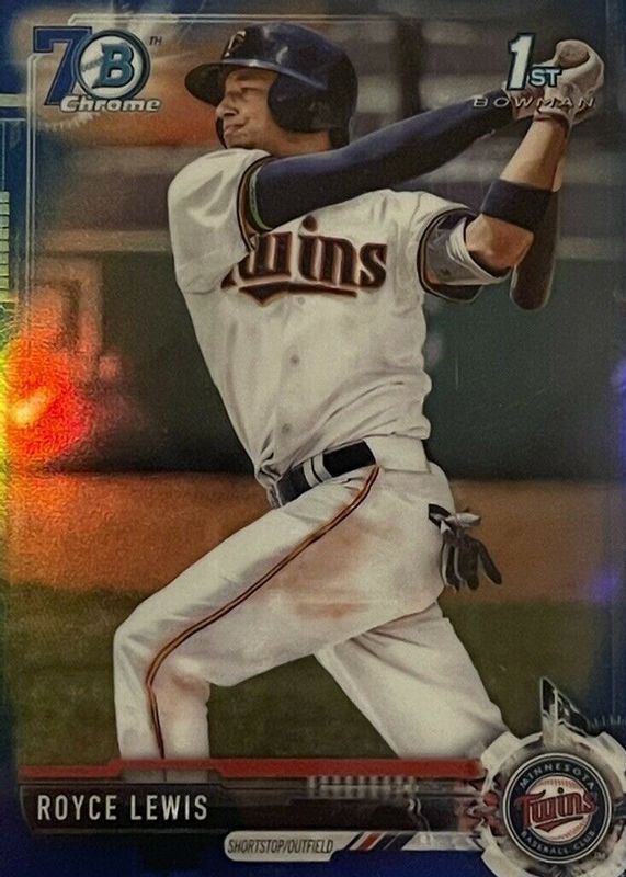 The Royce Lewis 2017 Bowman Draft #BDC-1 Chrome - 70th Anniversary Blue Refractor /200 (1st) card in Raw condition has not changed in price in the last 30 days and was last sold for $10.50 .