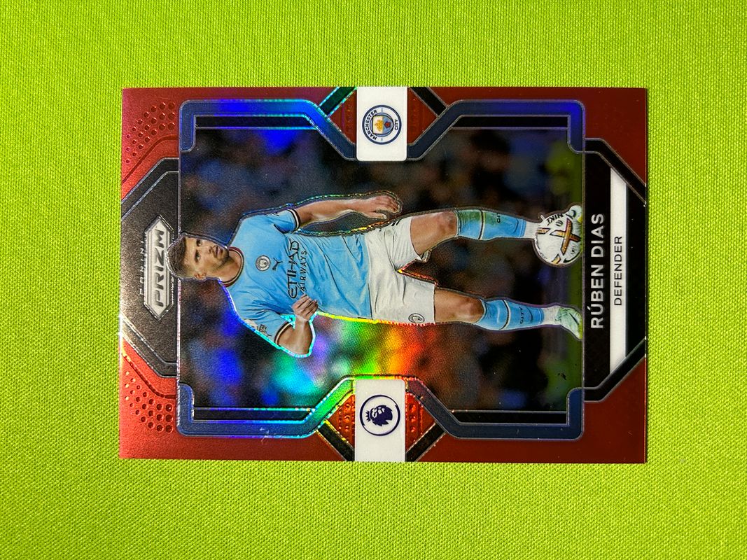 The Ruben Dias 2022 Prizm Premier League #3 Red /149 card is 1 of 50 Ruben Dias' card variations in the 2022 Prizm Premier League set being tracked by Sports Card Investor, including Base, Breakaway, Choice Blue Yellow Green, Green Ice, and Green Pulsar.