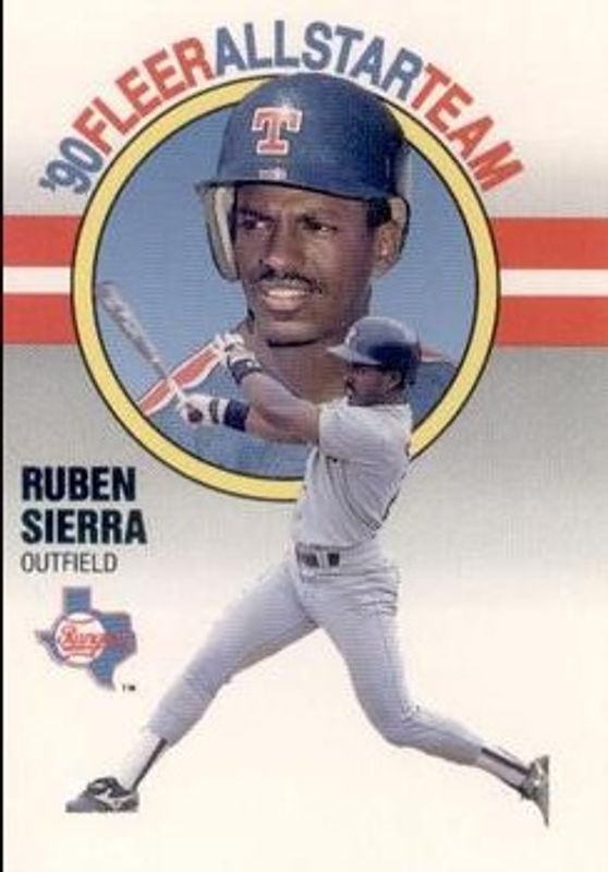 The Ruben Sierra 1990 Fleer #11 '90 Fleer All-Star Team card is 1 of 2 Ruben Sierra's card variations in the 1990 Fleer set being tracked by Sports Card Investor, including Base.