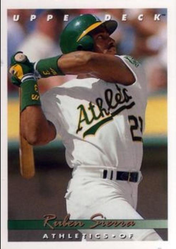 The Ruben Sierra 1993 Upper Deck #145 Base card is 1 of 3 Ruben Sierra's card variations in the 1993 Upper Deck set being tracked by Sports Card Investor, including Base, and Gold Hologram.