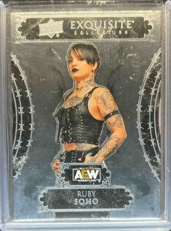 The Ruby Soho 2024 Upper Deck AEW Black Diamond #50 Exquisite Collection /125 card is 1 of 28 Ruby Soho's card variations in the 2024 Upper Deck AEW Black Diamond set being tracked by Sports Card Investor, including Base /149, Printing Plates /4, Autographs, Diamond Connection, and Diamond Mine Relics.
