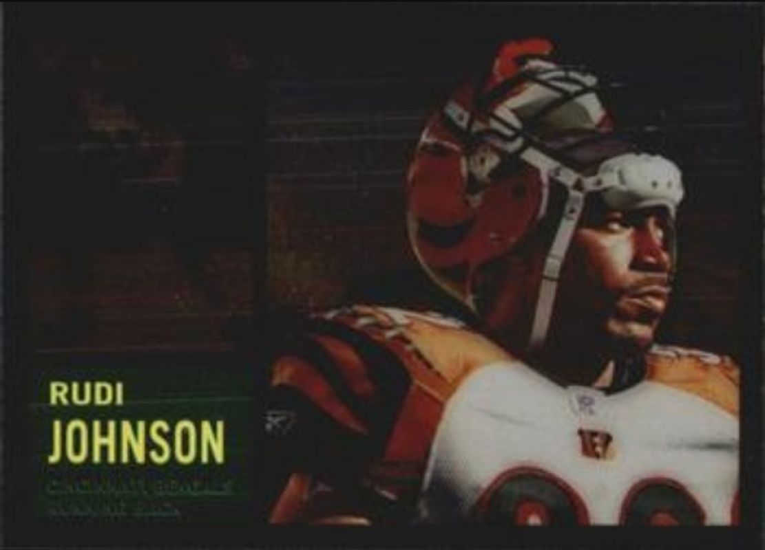 The Rudi Johnson 2005 Topps Heritage #THC50 Foil card is 1 of 3 Rudi Johnson's card variations in the 2005 Topps Heritage set being tracked by Sports Card Investor, including Base, and Rainbow Foil /50.