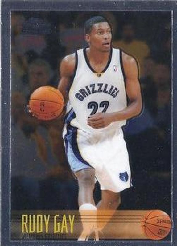 The Rudy Gay 2006 Topps Chrome #184 1996-97 Variations Rookie card is 1 of 17 Rudy Gay's card variations in the 2006 Topps Chrome set being tracked by Sports Card Investor, including Base, Framed Press Plates Black /1, Framed Press Plates Cyan /1, Framed Press Plates Magenta /1, and Framed Press Plates Yellow /1.