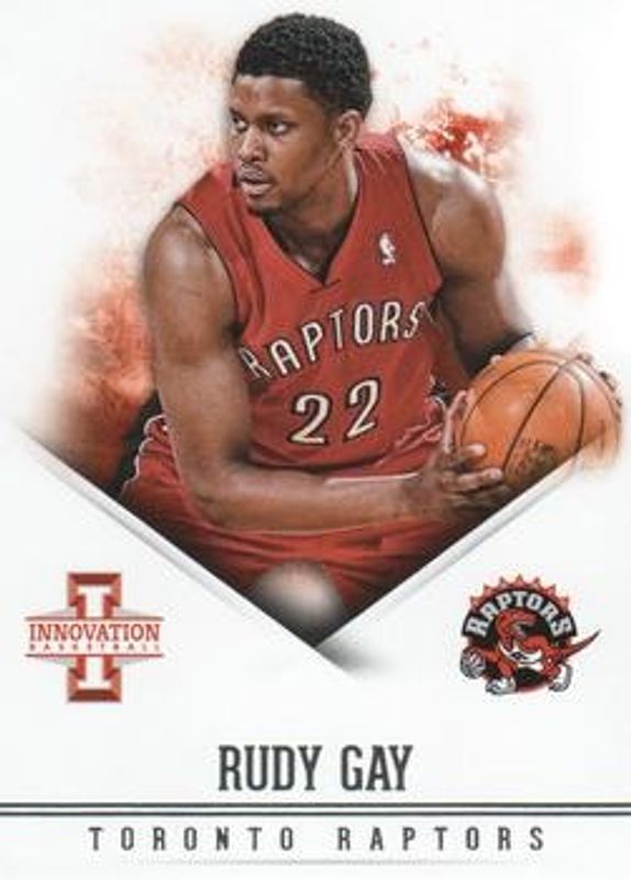 The Rudy Gay 2012 Innovation #57 Base card is 1 of 8 Rudy Gay's card variations in the 2012 Innovation set being tracked by Sports Card Investor, including Gold /10, Platinum /1, Laser Cut, Stained Glass /(SSP), and Stained Glass - Purple /(SSP).