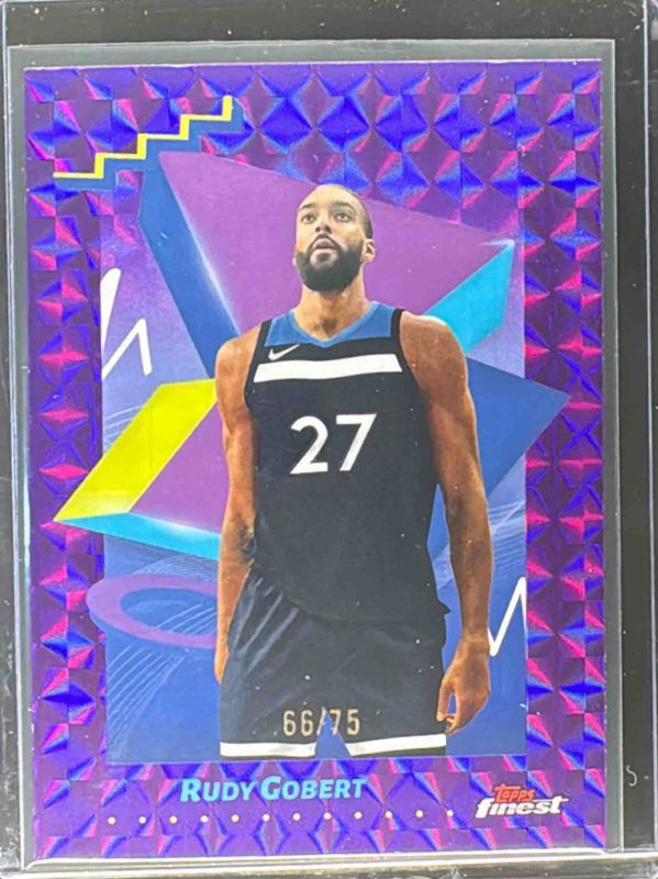 The Rudy Gobert 2024 Topps Finest #152 Base Uncommon - Purple Geometric Refractor /75 card is 1 of 44 Rudy Gobert's card variations in the 2024 Topps Finest set being tracked by Sports Card Investor, including Base Rare, Base Rare - Geometric Refractor, Base Rare - Refractor, Base Rare - Sky Blue Refractor, and Base Rare - X-Fractor.