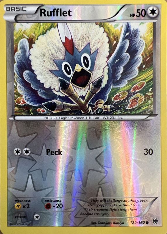 The Rufflet 2015 XY: BREAKthrough #129/162 Reverse Holo card in Raw TCG (Lightly Played) condition has not changed in price in the last 30 days and was last sold for $1.25 .