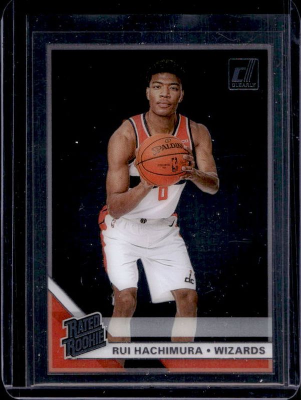 The Rui Hachimura 2019 Clearly Donruss #58 Base Rookie card is 1 of 26 Rui Hachimura's card variations in the 2019 Clearly Donruss set being tracked by Sports Card Investor, including Base, Rated Rookie Autographs - Holo Mosaic, Rated Rookie Variation, The Rookies - Holo Mosaic, and The Rookies - Red /49.