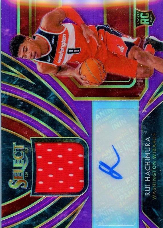 The Rui Hachimura 2019 Select #RJA-RHM Rookie Jersey Autographs - Purple /99 card in Raw condition has not changed in price in the last 30 days and was last sold for $25.00 .