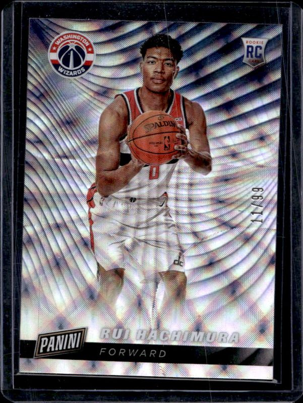 The Rui Hachimura 2019 Panini Cyber Monday #RC6 Rookies Future Frames /99 card is 1 of 10 Rui Hachimura's card variations in the 2019 Panini Cyber Monday set being tracked by Sports Card Investor, including Rookies, Rookies Cracked Ice Autographs, Rookies Holo /199, Rookies Swirlorama /50, and Rookies Cracked Ice /25.