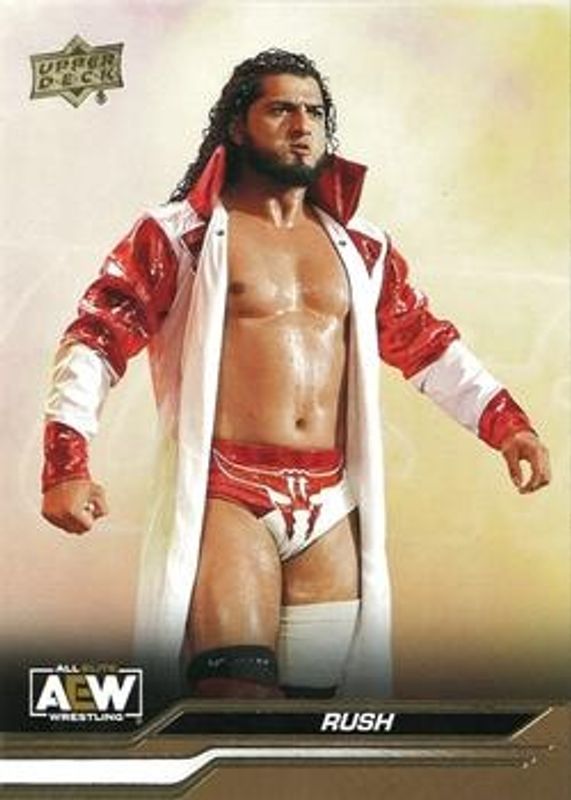 The Rush 2024 Upper Deck AEW #44 Gold card is 1 of 23 Rush's card variations in the 2024 Upper Deck AEW set being tracked by Sports Card Investor, including Base, Clear Cut, Diamond Plate, Outburst, and Pyro.