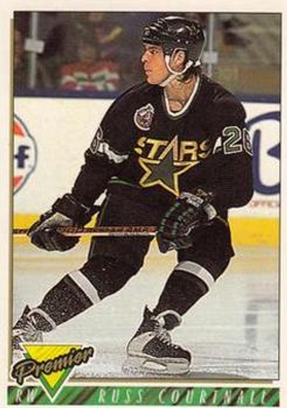 The Russ Courtnall 1993 Topps Premier #153 Base card is 1 of 2 Russ Courtnall's card variations in the 1993 Topps Premier set being tracked by Sports Card Investor, including Gold.