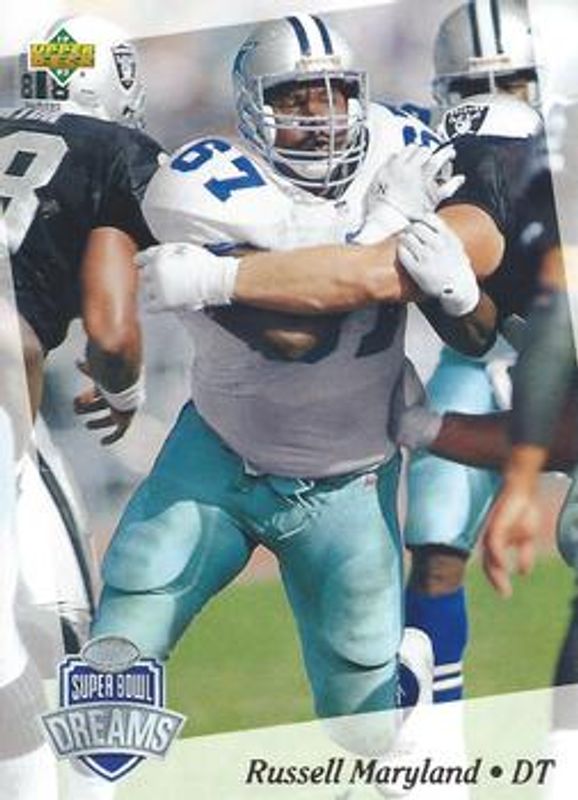 The Russell Maryland 1993 Upper Deck NFL Experience #45 Base card is 1 of 2 Russell Maryland's card variations in the 1993 Upper Deck NFL Experience set being tracked by Sports Card Investor, including Gold.