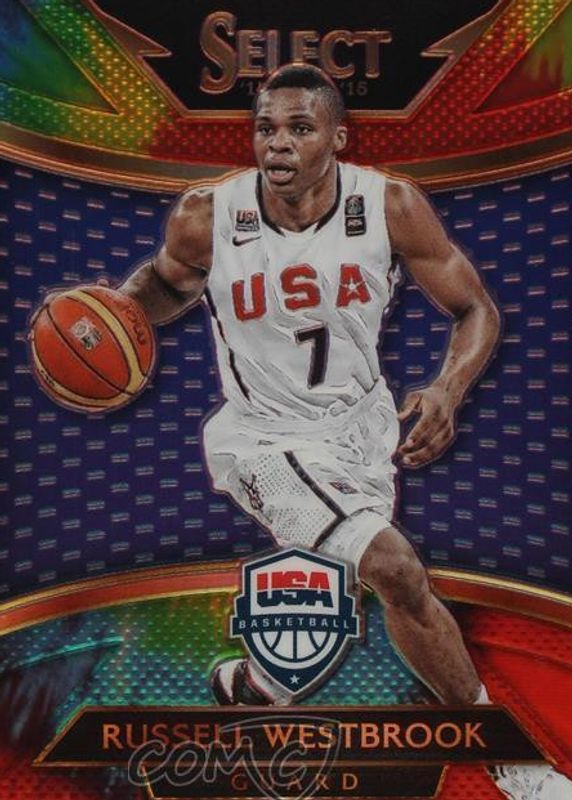 This card is 1 of 26 Russell Westbrook's card variations in the 2014 Select set being tracked by Sports Card Investor, including Concourse Blue & Silver, Concourse Purple & White, Concourse Silver, Courtside Blue & Silver (Team USA), and Courtside Purple & White (Team USA).