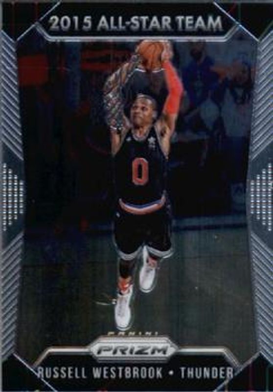 The Russell Westbrook 2015 Prizm #374 Base card is 1 of 57 Russell Westbrook's card variations in the 2015 Prizm set being tracked by Sports Card Investor, including #382 Base, #106 Base, #106 Flash, #382 Flash, and #374 Flash.