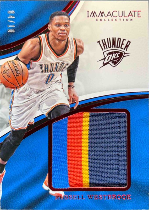 The Russell Westbrook 2016 Immaculate #SM-RWS Standout Materials - Red /25 card is 1 of 21 Russell Westbrook's card variations in the 2016 Immaculate set being tracked by Sports Card Investor, including Base /99, Blue /35, Red /25, Gold /10, and Emerald Special /5.