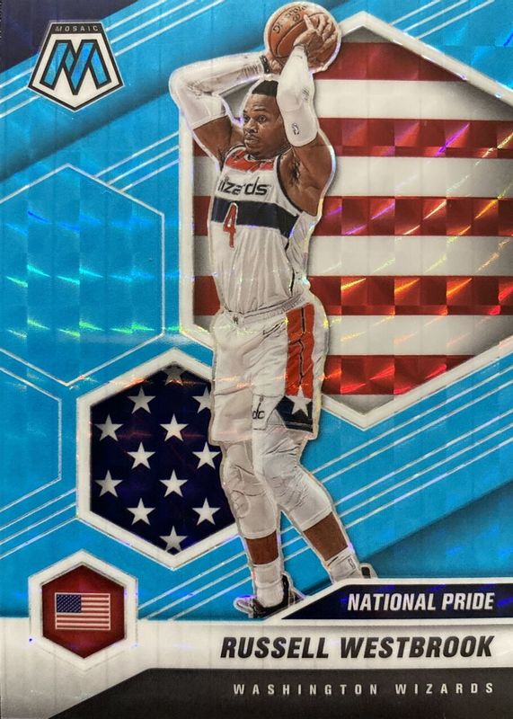Russell Westbrook 2020 Mosaic #253 National Pride - Blue Fluorescent /15 RAW Price Guide