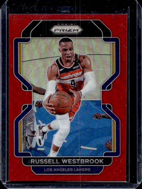 The Russell Westbrook 2021 Prizm #55 Red /299 card is 1 of 82 Russell Westbrook's card variations in the 2021 Prizm set being tracked by Sports Card Investor, including Base, Blue NBA 75th Anniversary, Blue Wave, Choice Blue Yellow Green, and Factory Set Blue Hyper.
