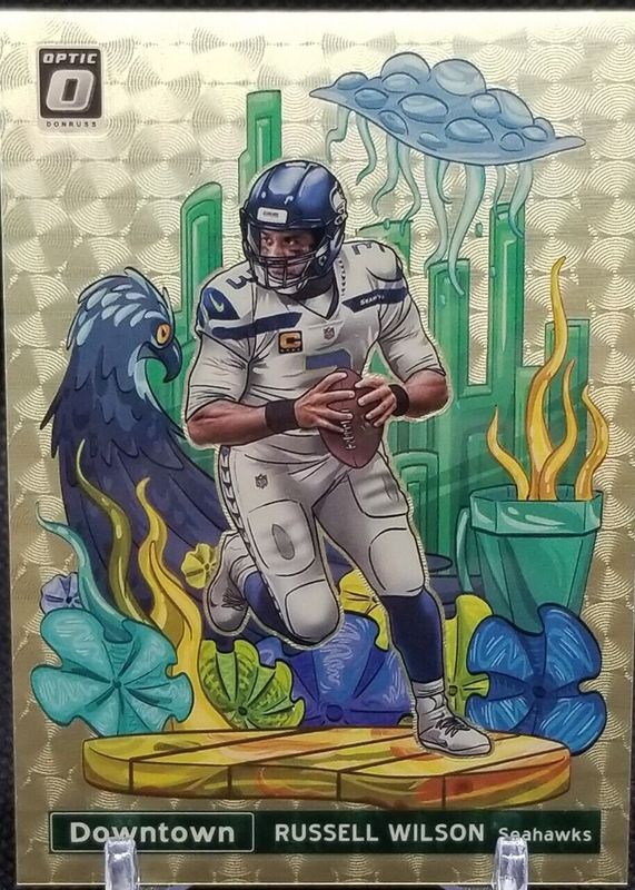 This card is 1 of 5 Russell Wilson's card variations in the 2021 Optic set being tracked by Sports Card Investor, including Downtown /(SSP), Downtown - Black Pandora /25, Downtown - Gold /10, and Downtown - White Sparkle /1.