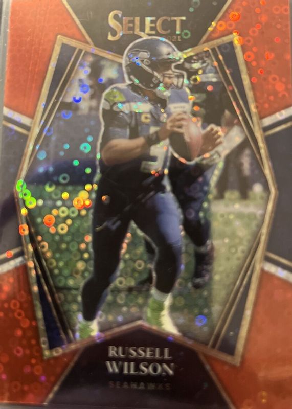 2021 Select Russell Wilson Premier Level Red Disco Prizm #8/49 #130 Seahawks