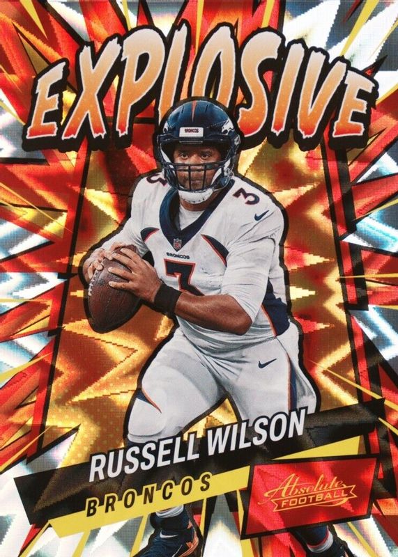 The Russell Wilson 2022 Absolute #E14 Explosive /(SSP) card in Raw condition has moved up $6.00 (+15.0%) in the last 30 days and was last sold for $46.00 .