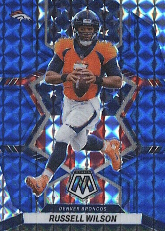 2022 Panini Mosaic Russell Wilson #257 Blue Mosaic /99 National Pride Broncos