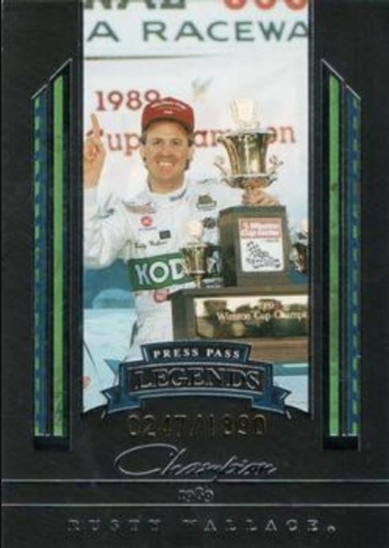 The Rusty Wallace 2005 Press Pass Legends #38B Blue /1890 card is 1 of 32 Rusty Wallace's card variations in the 2005 Press Pass Legends set being tracked by Sports Card Investor, including #22 Base, #38 Base, #22B Blue /1890, #38G Gold /750, and #22G Gold /750.