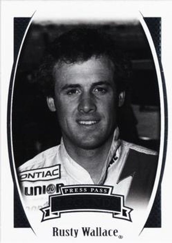 The Rusty Wallace 2007 Press Pass Legends #32 Base card is 1 of 29 Rusty Wallace's card variations in the 2007 Press Pass Legends set being tracked by Sports Card Investor, including Solo, Blue /999, Bronze /599, Gold /249, and Holofoil /99.